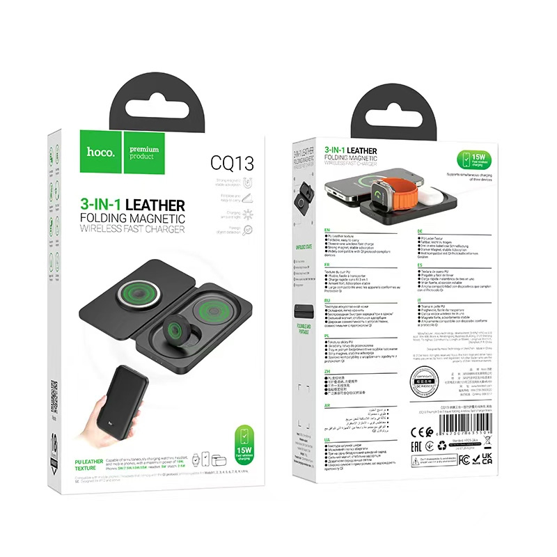 Hoco CQ13 Triumph 3-in-1 Travel Folding Wireless Fast Charger – Black