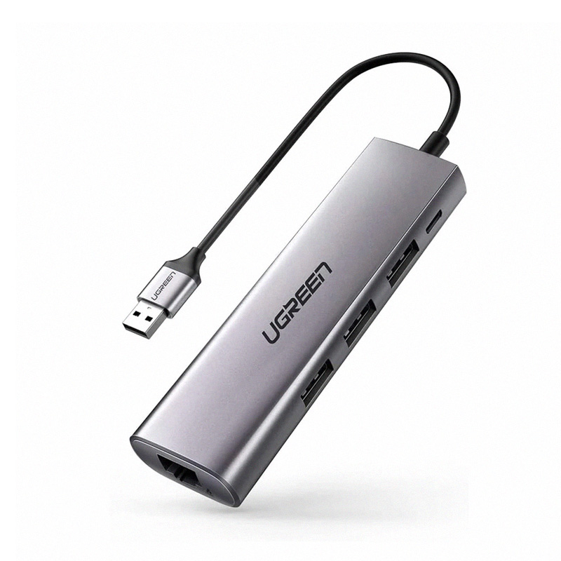 UGREEN USB3.0 Multifunction Adapter (Gray) CM266 – 3USB/RJ45/MicroUSB (60812)